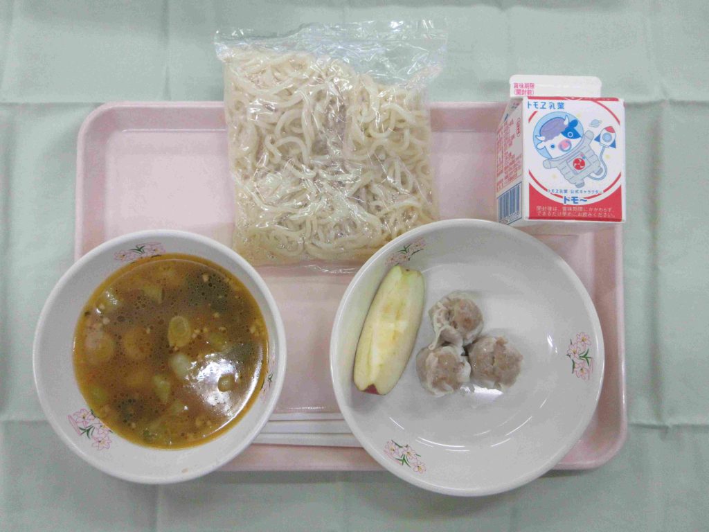 今日の献立は、タンタンメン・牛乳・ポークしゅうまい