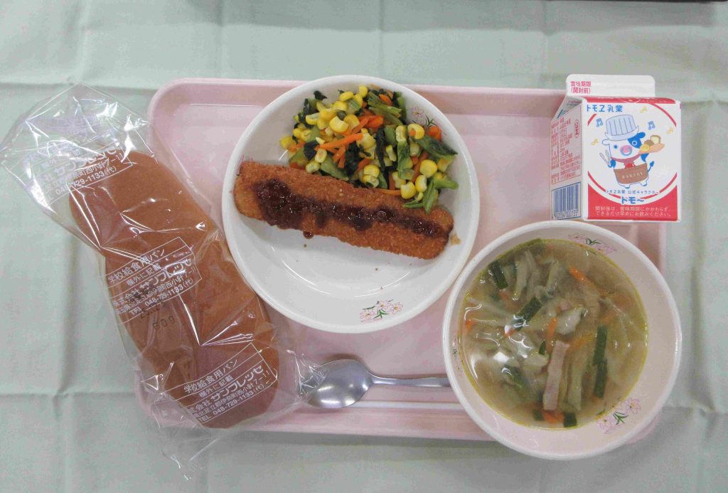 今日の献立は、コッペパン・牛乳・たちうおフライ