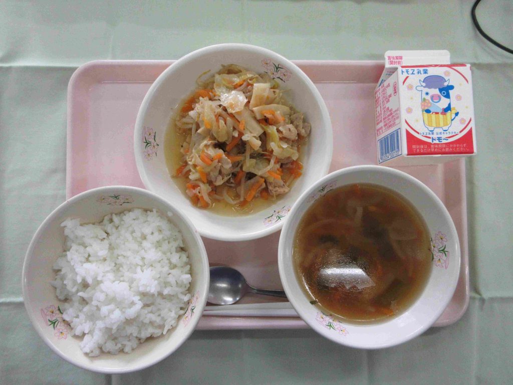 今日の献立は、ごはん・牛乳・肉野菜炒め