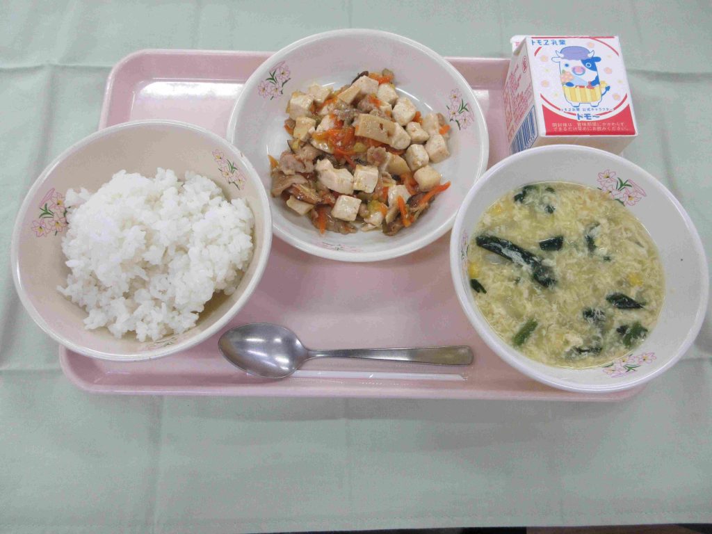 今日の献立は、ごはん・牛乳・四川豆腐